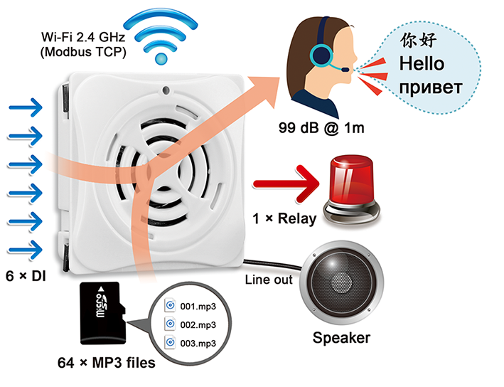 | ALM-06-WF CR | MP3 Alert module with Wi-Fi connection, 6-ch DI and 1-ch Relay Output. (RoHS) (Asia Only) |