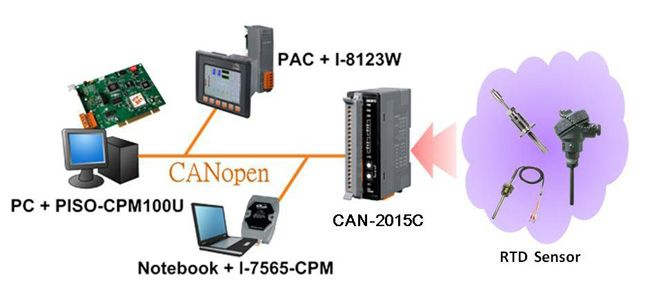 The CAN-2015C is a CANopen slave which follows the CiA 301 version 4.02 and CiA 401 version 2.1. This module provides 8 RTD input channels, and users can obtain the RTD input data or configure the CAN-2015C via the standard CANopen protocol. In order to be fully compatible with other CANopen devices, the CAN-2015C has passed the validation of the CiA CANopen Conformance Test tool. Therefore, it is very easy to integrate the CAN-2015C with the standard CANopen master by applying the EDS file. Combining with the CANopen masters of ICP DAS, you can quickly build a CANopen network to approach your requirements.