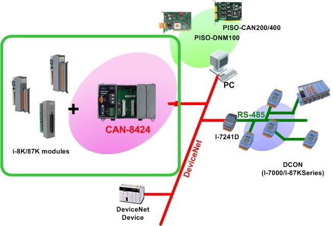 The CAN-8424 main unit based on the modular design offers many good features to the users and provides more flexibility in data acquisition and control system. In addition, ICP DAS also presents a CAN-8424 Utility tool to allow users to configure and create the EDS file for the specific IO modules plugged in. Therefore, users can easily apply the CAN-8424 embedded controller in DeviceNet network.
