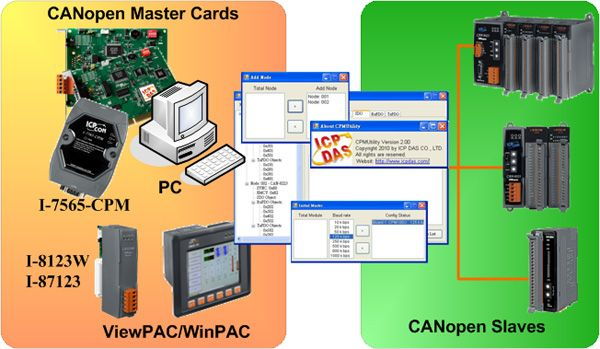 ICP DAS CANopen Master Library (DLL functions) for Windows NT/2000/XP/Win7 provides users to establish CANopen network rapidly by Master/Slave connection model. The users can develop various CANopen application programs via this library. The CANopen master library is for PCI CAN interface card, which are PISO-CAN series, PEX-CAN series and PCM-CAN series. Applying the library, users don't need to take care of the detail of the CANopen protocol.