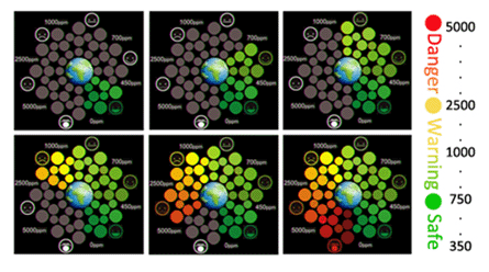 Large 2.8" LCD Touch Screen, with clear Color Chart to indicate the CO/CO2 Level
