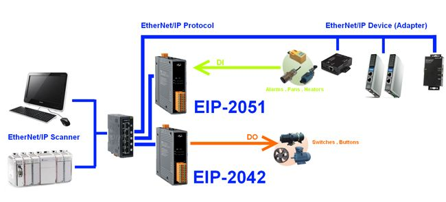 The EIP-2000 is an industrial remote I/O module series supporting the EtherNet/IP protocol. Users can seamlessly integrate these modules into the Ethernet network from the industrial floor to the enterprise. The EIP-2000 allows daisy chain connection which permits the flexibility in locating devices, eases installation and lowers infrastructure costs. All the modules can be deployed in the network topologies such as star, line or ring. The isolation design protects the EIP-2000 against the harmful interference. The EIP-2051 is a remote digital input module with 16 inputs. It is designed as an EtherNet/IP adapter. Users can obtain the input status as well as the connection status of the EIP-2051 by the LEDs indication. In addition, ICPDAS provides software utility to easily configure and test the EIP-2000 modules via Ethernet.