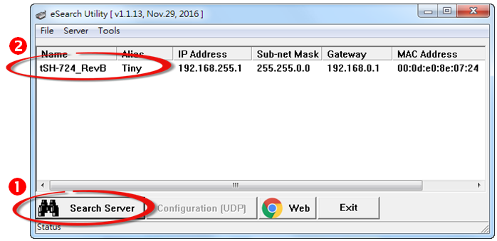 eSearch Utility is a portable application under Linux and all the most popular Windows OS. It supports tDS-700/tGW-700, tM-752N, tSH-700 series modules and most of the ICP DAS Ethernet I/O devices for getting network configuration information such as IP address, gateway, subnet mask, MAC address and alias, and configuring those network settings for modules joining the network.