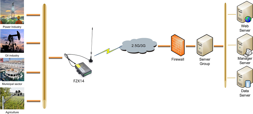 F2414 Modem has been widely used on M2M fields, such as intelligent transportation, smart grid, industrial automation, telemetry, finance, POS, water supply, environment protection, post, weather, and so on.