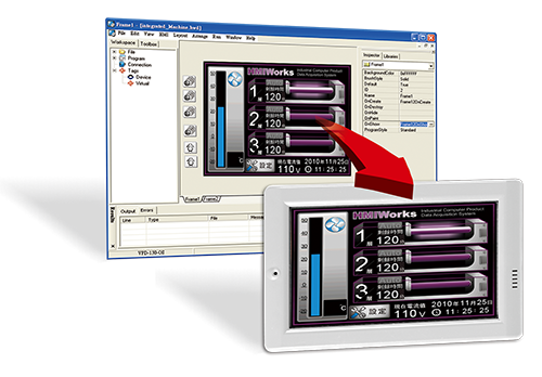 HMIWorks is a free development software for TouchPAD series products of ICP DAS. It features of many widgets, built-in extensible graphics library, intuitive design, C programming, Ladder Diagram support, fully I/O integration... etc. HMIWorks helps users to short the development time and design the sophisticated, cost effective solutions for the complex systems.
