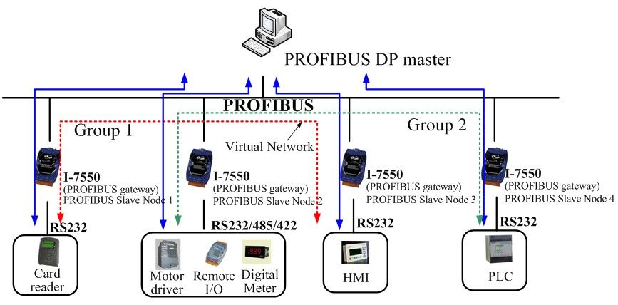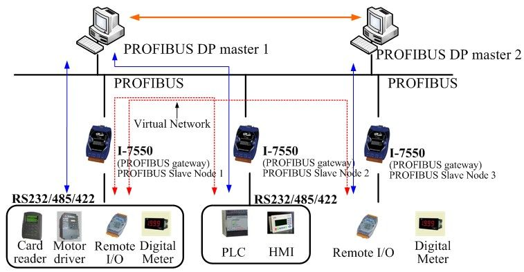 The I-7550 converter is specially designed for the slave device of PROFIBUS DP protocol. It offers RS-232, RS-422, and RS-485 three kinds of communication way. With the Hybrid COM 1 design, users can readily choose one type of com port to use. By using this module, users can put their RS-232/422/485 devices into PROFIBUS network very easily.