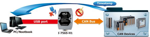 The CAN port of I-7565-H1 is isolated with 2500Vrms. This isolation can protect the local devices from the damage signal coming from CAN network.