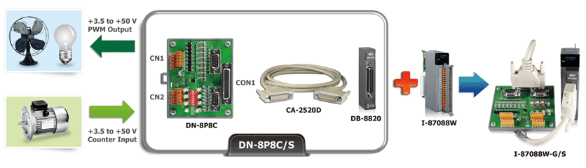 | I-87088W-G CR | 8-ch PWM Output and 8-ch High-speed Counter Input Module (RoHS) |