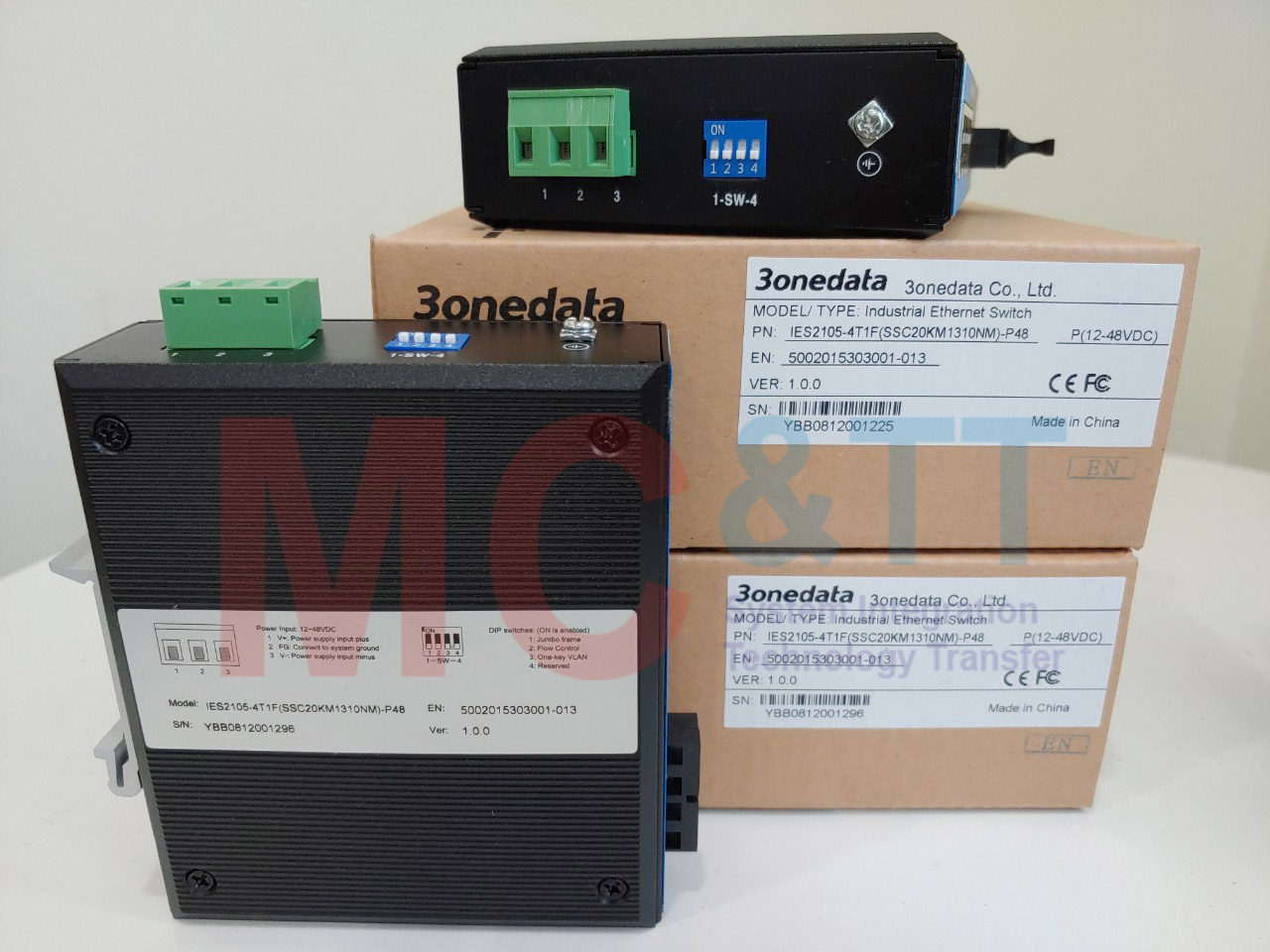 Switch công nghiệp 4 cổng Ethernet + 1 cổng quang (Single mode, Dual fiber, SC, 20KM) 3Onedata IES2105-4T1F(SSC20KM)-P48