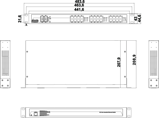| 24-port 10/100/1000Base-T(X) + 4 * Gigabit SFP ports, rack-mounted, 100-240VAC |