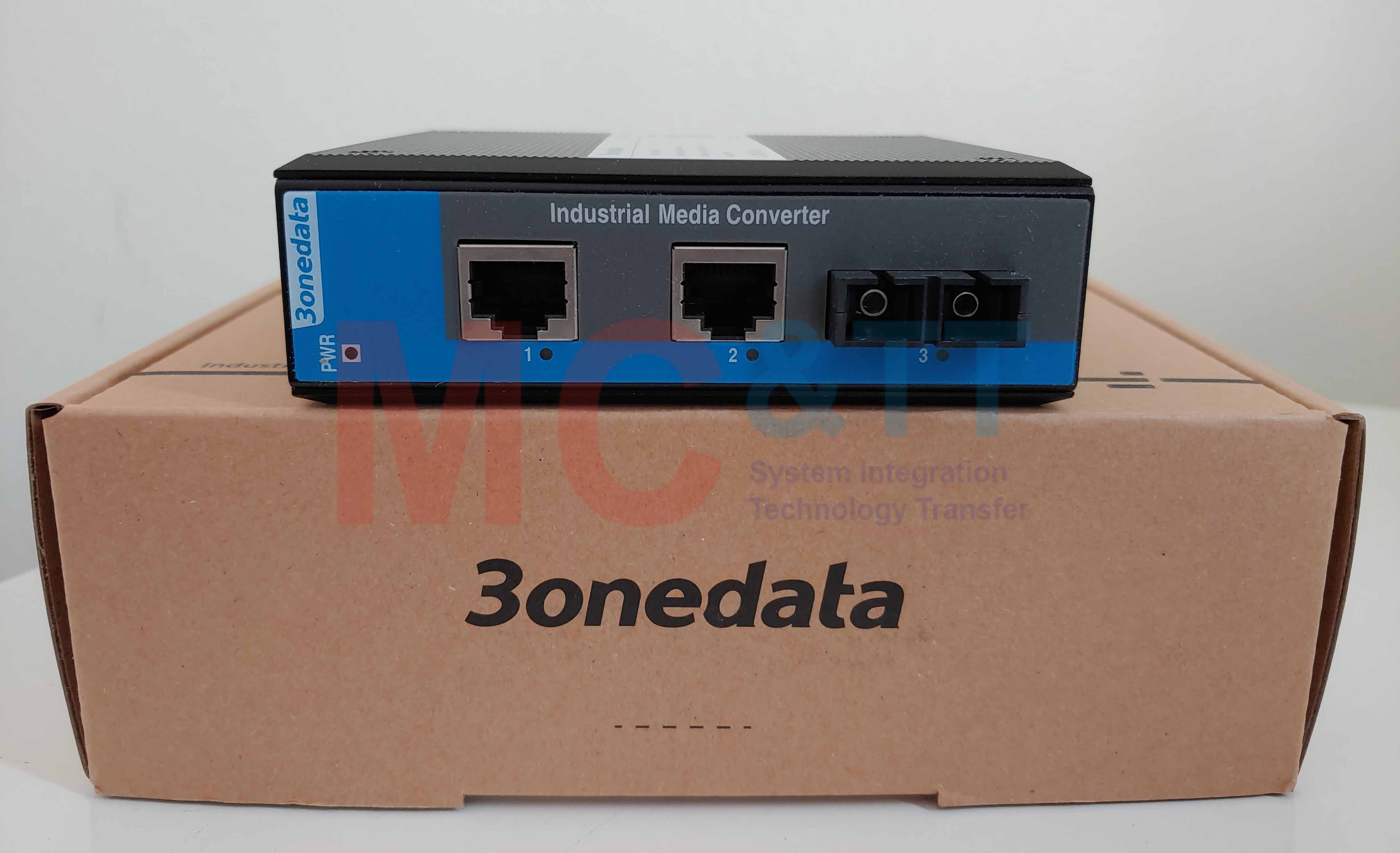 Bộ chuyển đổi quang điện công nghiệp 2 cổng Ethernet + 1 cổng quang (Dual fiber, Multi-mode, SC, 2KM) 3Onedata IMC100-2T1F-M-SC-2KM-P48