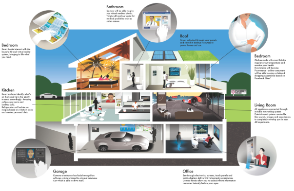 - Ứng dụng IoT cho nhà thông minh hay còn gọi là Smarthome hay phát triển xa hơn nữa là thành phố thông minh trong tương lai. Hiện nay dịch vụ lắp đặt các thiết bị cho nhà thông minh được phát triển rất mạnh. Các thiết bị trong ngôi nhà của bạn như : đèn, quạt, camera,…và các thiết bị khác sẽ được kết nối Internet. Thông qua mạng Internet người chủ có thể tắt mở các thiết bị trong nhà của mình ở mọi nơi trên thế giới chỉ cần có kết nối Internet. Có thể điều khiển thiết bị bằng máy tính, điện thoại, máy tính bảng. => Lợi ích tạo ra cho con người là gì ? Chúng ta sẽ tiết kiệm được chi phí tiền điện, bảo vệ ngôi nhà của bạn thông qua các thiết lập khi có người bên ngoài xâm nhập,….