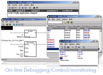 This feature is very useful when the real Input/Output device is not available or not reachable or sometimes is not allowed to change value or state for testing. ISaGRAF can “Lock” these I/O variables which you want to test to become internal virtual I/O. Then the user can easily debug his application with every input condition he wants to test, and the locked output will not do real output, it becomes virtual.
