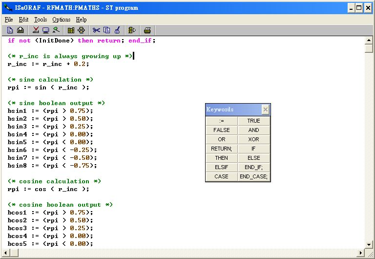 The ISaGRAF workbench software includes the following syntax: