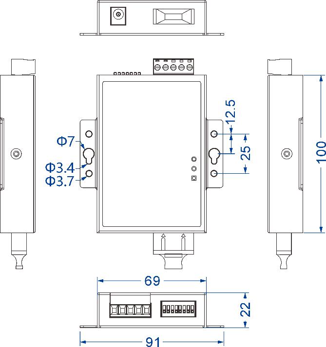 Housing: IP40 protection, metal Installation: wall mounting Dimension (W x H x D): 69mm×22mm×100mm Weight: 237g