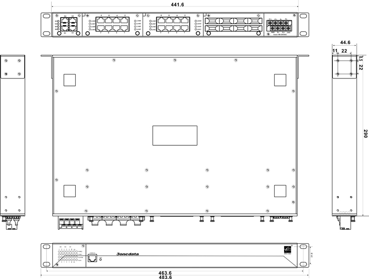 MES5028M-4GS is a high performance, cost-effective high-end intelligent modular switch which supports 24 Fast Ethernet Ports and 4 Gigabit Ethernet ports. This product provides 3 groups of 8 Fast Ethernet interface module, 1 groups of 4 Gigabit interface module. The type of interface can be matched according to need. The MES5028M-4GS is a gigabit managed industrial switches, by Shenzhen 3onedata technology Co., Ltd independent research. MES5028M-4GS switches provide senior management functions, such as: SW-Ring, virtual local area network, trunking, quality of service QoS, rate control, port mirroring, fault alarm and firmware online upgrade. SW-RingTM is an arithmetic designed as a rapid redundancy network. It provided recover technology for fault of rapid redundant network, the recovery time<20ms. Aiming at the security problems appearing in the LAN, the security function of 802.1x authentications is provided, and the visual WEB operation interface is provided.