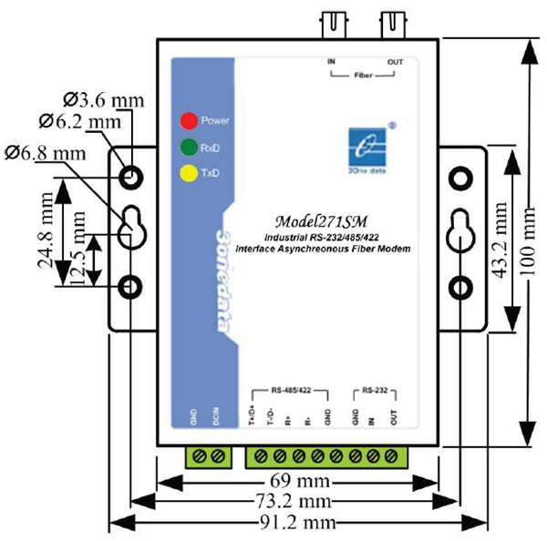 The Model271 Series serial to fiber optic converter is equipped with a multiple interface circuit that can handle RS-232, or RS-422/485 serial interfaces and multi-mode or single- mode fiber. Model271 converters are used to extend serial transmission distance up to 2-5 km (multi-mode fiber) or up to 20-120 km (single- mode fiber). Note that the RS-232 and RS-422/485 interfaces cannot be used on the same Model271 at the same time.