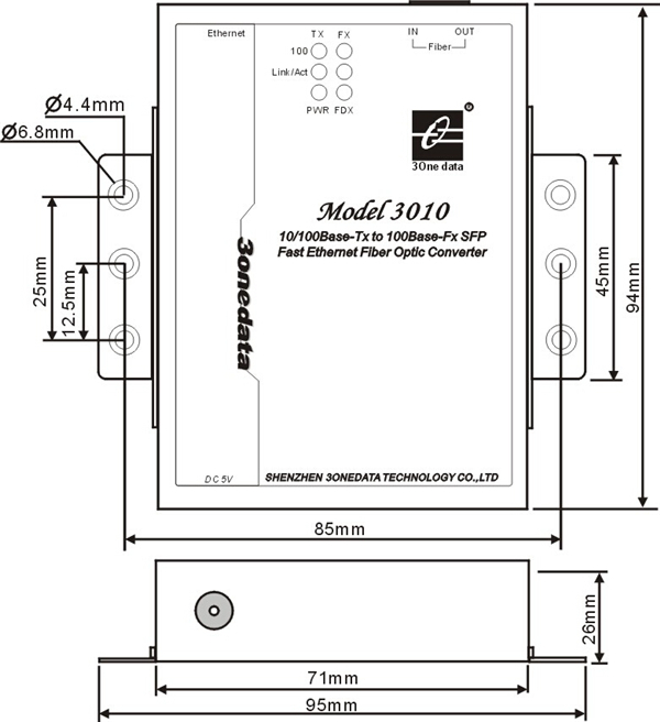 | 1-port 10/100M media converter with one SFP slot, 5VDC |