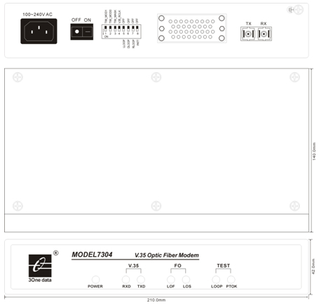MODEL7304 là modem quang V.35, nó có thể chuyển đổi tín hiệu V.35 sang tín hiệu quang với hiệu suất cao thông qua một hệ thống tích hợp chuyên dụng. Nó có thể điều chế tín hiệu luồng V.35 N×64K sang tín hiệu quang, có thể lựa chọn cáp quang single-mode hoặc multi-mode khi truyền tín hiệu. Tại đầu phía bên kia (đầu thu), tín hiệu quang thu được sẽ được chuyển đổi ngược lại thành tín hiệu luồng V.35 (N*64K). Giao diện V.35 có thể kết nối với trực tiếp với giao diện V.35 của các thiết bị đầu cuối hoặc cổng WAN của MUX, hoặc kết nối một mạng LAN.