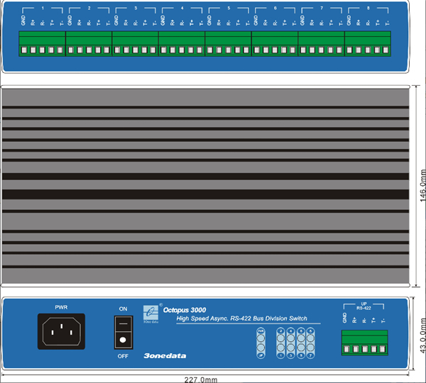 Octopus3000 is a type of RS-485/422 bus division concentrator of high performance. Octopus3000 adopts the unique equipotential differential isolation and bus division concentration technology to effectively such problems as ground potential difference, impedance matching and lightning strike frequently seen in engineering wiring process. Users can easily optimize the RS-485/RS-422 bus structure, divide the network section and improve the communication reliability.