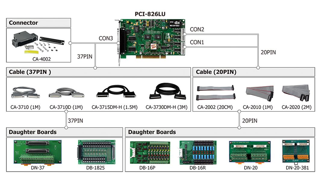 | Connector | Female DB37 x 1 20-pin box header x 2 |