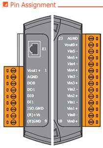 The PET-7026 is a multi-function module, there are 6-channel analog inputs, 2-channel analog output, 2-channel digital inputs and 2-channel digital outputs module. It provides programmable input range on all analog inputs(+/-500mV, +/-1V, +/-5V, +/-10V, +/-20mA, 0~20mA and 4~20mA), analaog outputs are 12 bit with +/-5V, +/-10V, 0~20mA and 4~20mA and digital output can be set alarm output. Each analog input is allowed to configure an individual range and has 240 Vrms high over voltage protection. Jumper selectable for voltage or current inputs/outputs.