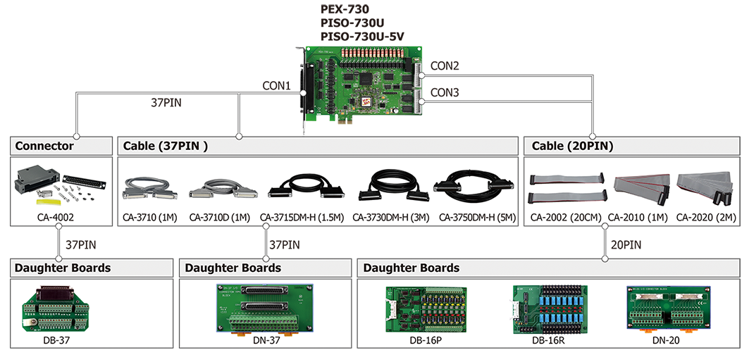 | Connector | Female DB37 x 1 20-pin box header x 2 |