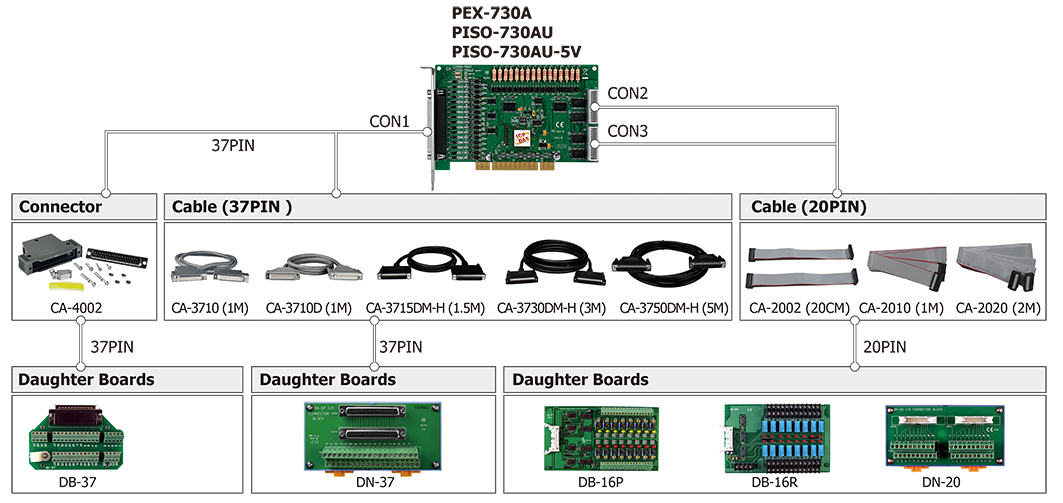 | Connector | Female DB37 x 1 20-pin box header x 2 |