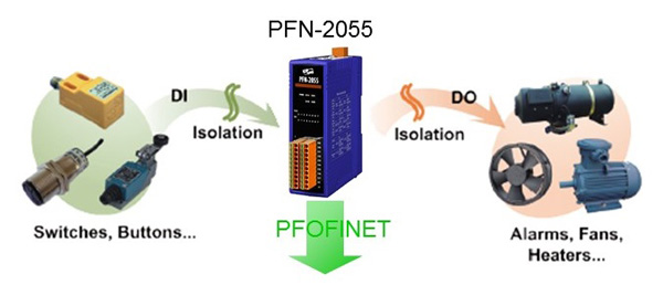 The PFN-2055 is specially designed for PROFINET IO device. It has 8-channel isolated digital inputs and 8-channel isolated digital outputs, and is suited in various industrial applications. You can access and configure it by using the GSDML file in any PROFINET Engineering tool.