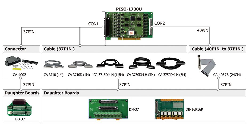 | Connector | Female DB37 x 1 40-pin box header x 1 |
