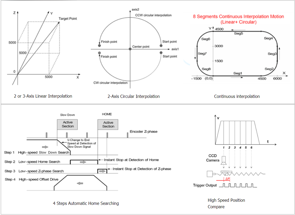 | Position Compare Output | High-Speed 5 V TTL or 24 V open collector (4 of any 8 axes) |