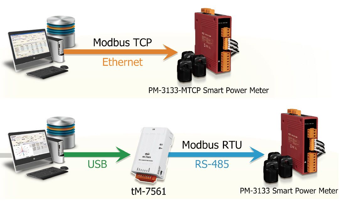Power Meter Utility has to be installed on PC and it enables to retrieve and display the power measurement values that measured by power meter via COM Port or Ethernet. The users will be able to read the power measurement values and to perform parameter settings of the meter.