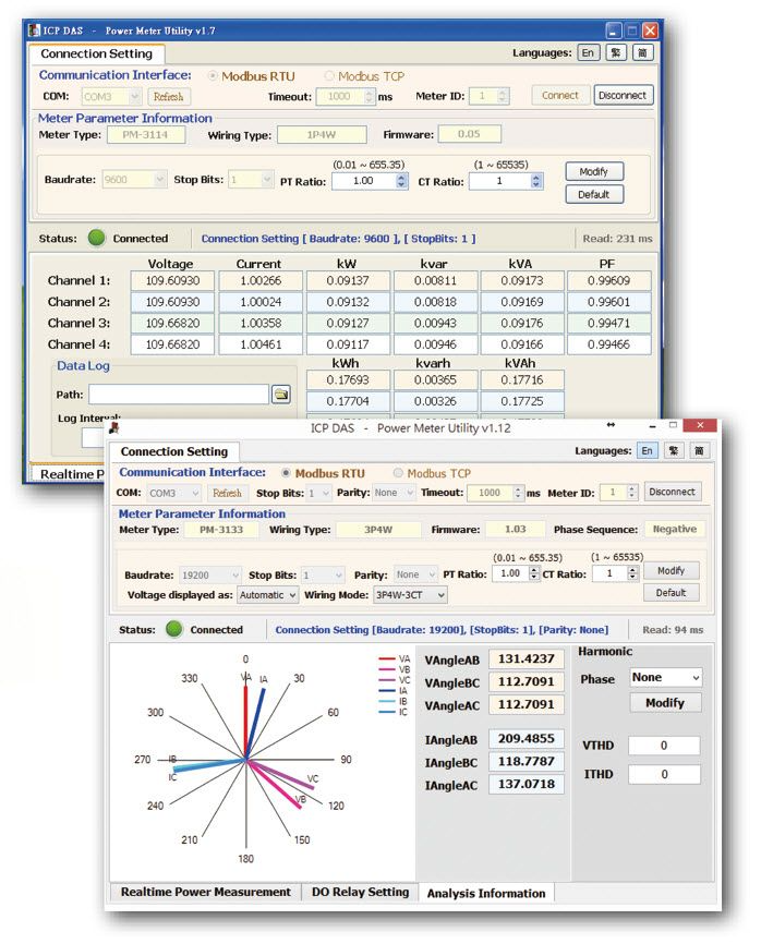 Phần mềm hiển thị số liệu bộ đo điện thông minh ICP DAS Power Meter Utility