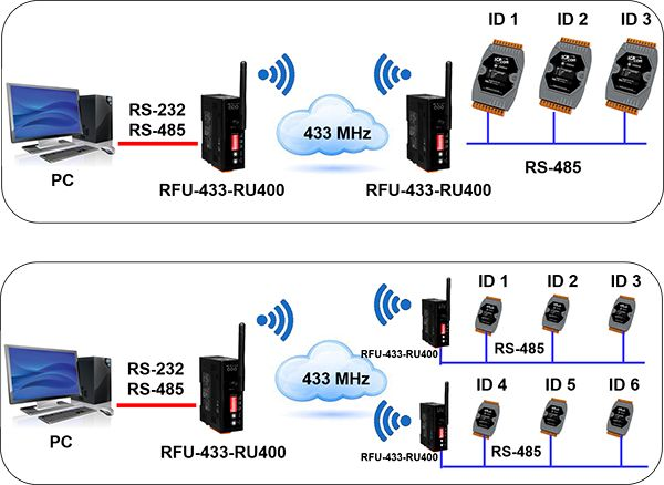 Radio modem 433 MHz giap tiếp RS-232/RS-485 ICP DAS RFU-433-RU400 CR