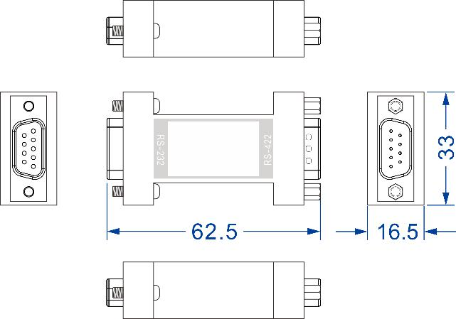 Housing: plastic Dimension (W x H x D): 90mm×33mm×16.5mm(DB9,with terminal blocks) 65mm×55mm×16.5mm(DB25) Weight: 40g