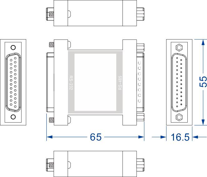 Housing: plastic Dimension (W x H x D): 90mm×33mm×16.5mm(DB9,with terminal blocks) 65mm×55mm×16.5mm(DB25) Weight: 40g