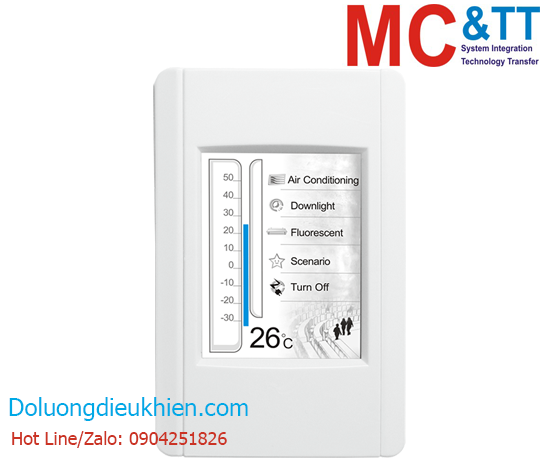 TPD 2.8 inch H series of tiny touch HMI and designed for building and home automation. TPD 2.8 inch series is equipped with high resolution TFT color touch screen and fits in with regular electrical wall-mount outlet. Besides, it is seamlessly integrated with rich I/O modules and presents beautiful, flexible and user-defined picture frame. In short, it is the best choice to upgrade the mechanical switch to intelligent control pads.