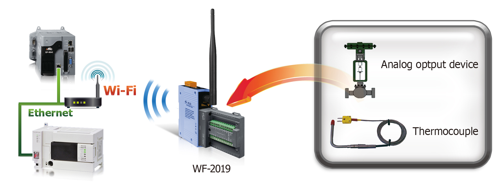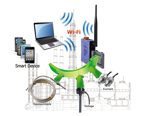 The WF-2019 is a 10-channel universal analog input module with voltage and current input types. It provides extremely accurate thermocouple measurement and automatically cold-junction compensation for each channel. In addition, the WF-2019 has WLAN connection complies with the IEEE802.11b/g standards. With the popularity of 802.11 network infrastructure, the WF-2019 makes an easy way to incorporate wireless connectivity into monitoring and control systems. The WF-2019 also supports Modbus/TCP and UDP protocols and the network encryption configuration, which makes perfect integration to SCADA software and offer easy and safe access for users from anytime and anywhere.