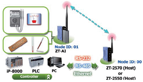 Important Note: ZigBee Data Acquisition modules need a ZigBee host converter to coordinate the data transmission route. Please remember to order a ZT-2550, ZT-2570, or ZT-USBC ZigBee host converter when you purchase ZigBee Data Acquisition products. |